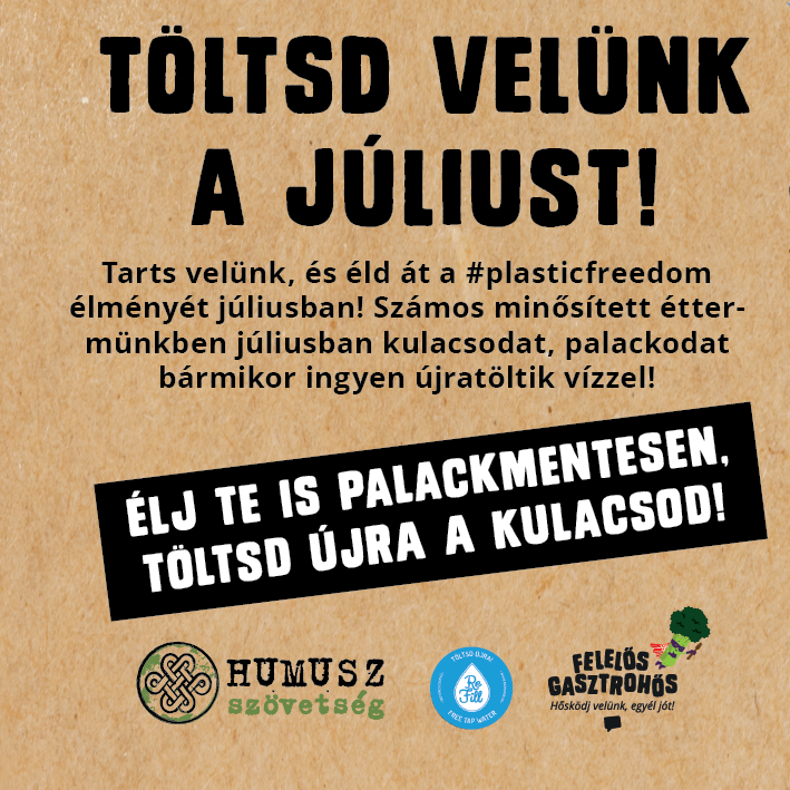 Júliusban a Plastic Free July, nemzetközi mozgalomhoz csatlakozva a Felelős Gasztrohős Alapítvány a Humusz Szövetséggel és a Refillel közösen műanyagmentes életre buzdítja a lakosságot.