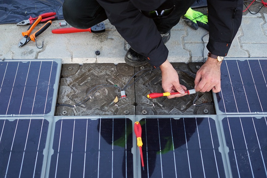 A térburkoló elemeket a Prologis Park Budapest-Harbor elektromos töltőállomása melletti járdába építették be, összesen 4,7 négyzetméternyi területen. Napsütéses időben a 720 wattos rendszer zöld energiával látja el a töltőállomást. Amikor az állomás üres, a megtermelt energiát egy közeli irodaépület használja fel.